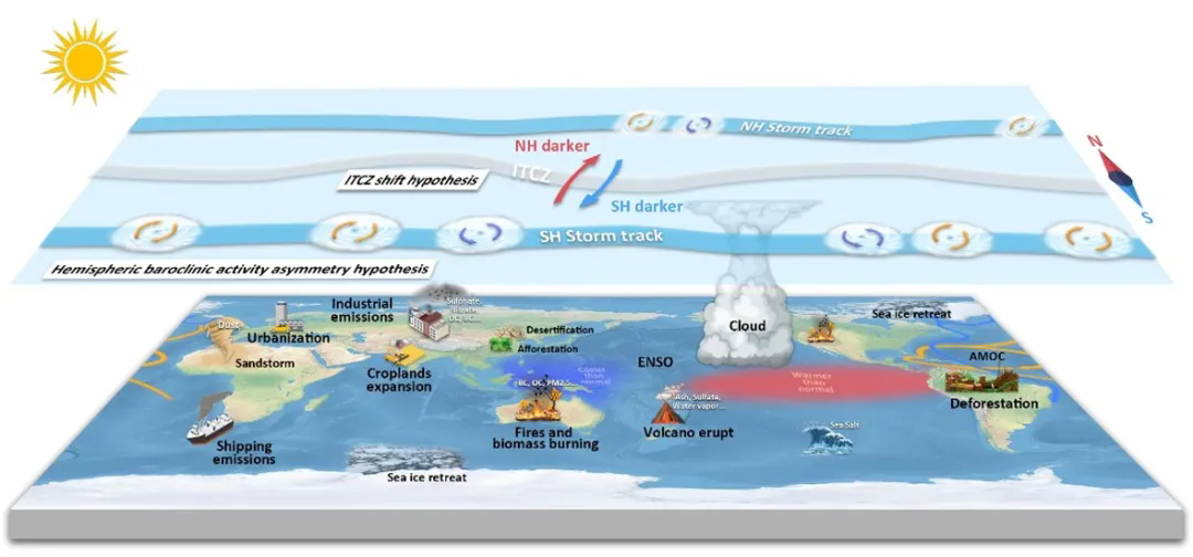 The global average planetary albedo is declining at a rate of-0.0023 per decade, reaching a satellite-record low of 0.286 in 2023. This reduction has led to a continuous increase in Earth's absorption of solar radiation, exacerbating global warming. Notably, the Northern Hemisphere shows a faster albedo decrease than the Southern Hemisphere, revealing significant regional climate asymmetry. Research indicates that this change is primarily driven by three factors: reduced low cloud cover in tropical and subtropical oceans, melting polar ice and snow, and decreased aerosol emissions from pollution control measures and shipping industry emission reductions.