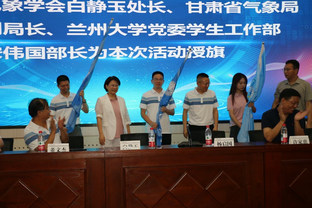 On the morning of July 8, the launch ceremony for the Second National Joint Internship and Scientific Field Expedition for Undergraduate Students in Atmospheric Sciences, along with the Summer Research and Learning Program "Meteorological Talents Cultivated in Gansu" co-organized by the Gansu Provincial Meteorological Bureau and Lanzhou University, was held at Guocheng Lecture Hall in the Chengguan Campus of Lanzhou University. The event aims to thoroughly implement General Secretary Xi Jinping’s important instructions during his inspection tour in Gansu, strengthen contemporary meteorology students’ knowledge foundation, professional competence, and practical skills, and promote academic exchange among faculty and students in atmospheric sciences across China. The ceremony was attended by Bai Jingyu, Director of the Comprehensive Coordination Department at the Secretariat of the Chinese Meteorological Society; Yang Qiguo, Member of the Party Leadership Group and Deputy Director of the Gansu Provincial Meteorological Bureau; Xu Jiaci, General Manager of Beijing Juheng Bolian Technology Co., Ltd.; officials from the Science and Technology & Forecasting Department and Personnel Department of the Gansu Provincial Meteorological Bureau; representatives from the Academic Affairs Office, Student Affairs Office, and College of Atmospheric Sciences at Lanzhou University; as well as teachers and students participating in the internship and field research program.The departure ceremony was hosted by Associate Dean Yang Yi from the College of Atmospheric Sciences at Lanzhou University.