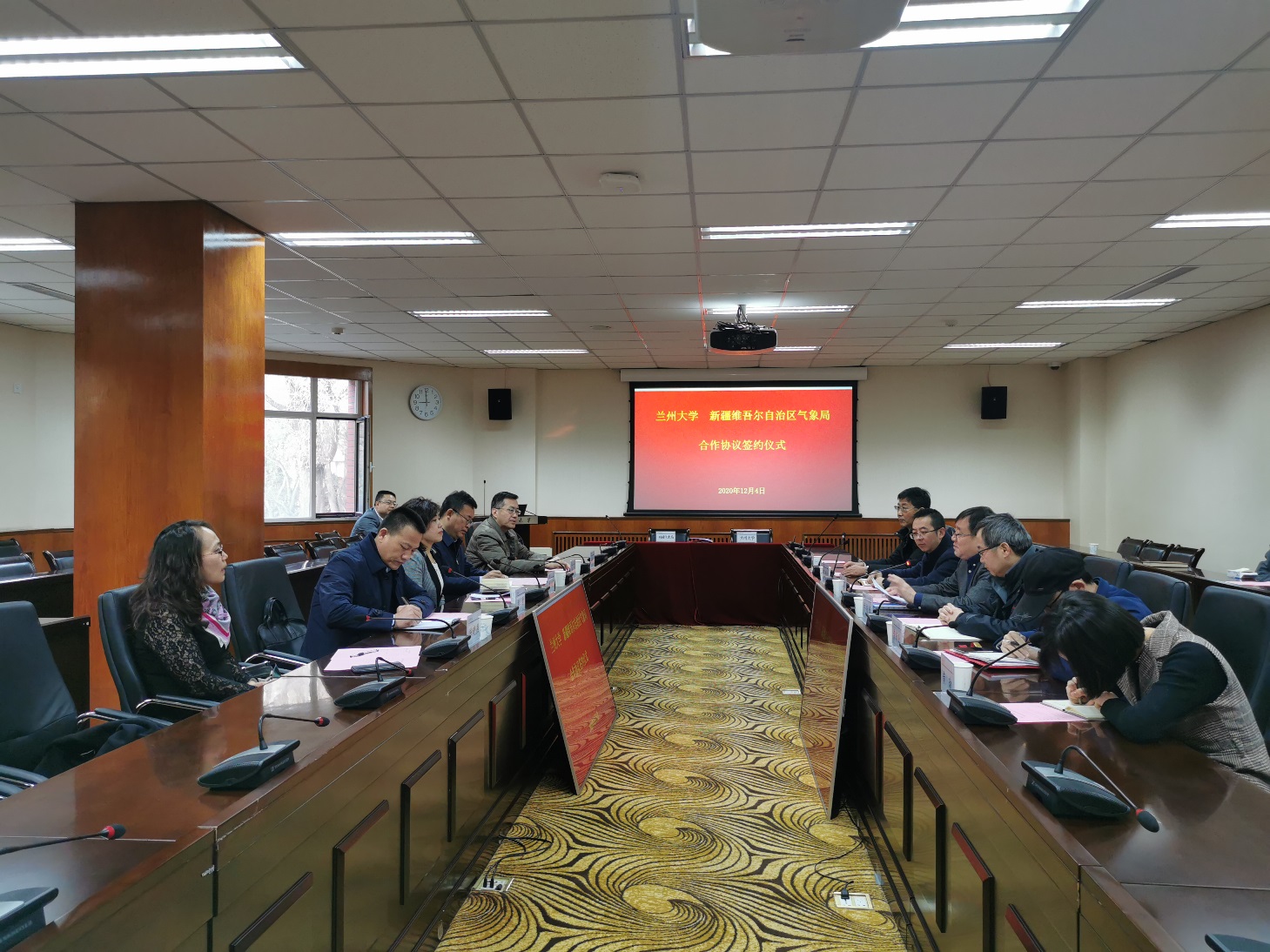 Aims to further implement the spirit of the Tenth Party Congress of the university, deepen bureau-school cooperation, and promote the construction of first-class disciplines in atmospheric sciences, on December 4, Lanzhou University and the Xinjiang Uygur Autonomous Region Meteorological Bureau formally signed a cooperation agreement. Cui Caixia, deputy secretary and director of the Xinjiang Meteorological Bureau, He Qing, member and deputy director of the Xinjiang Meteorological Bureau, and Xu Shengcheng, deputy secretary and vice president of Lanzhou University, attended the signing ceremony.