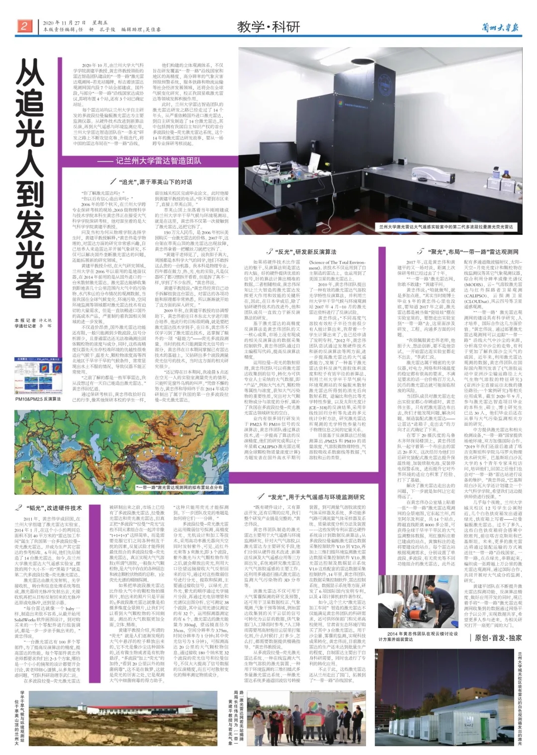 Huang Jianping’s team is continuously improving the lidar detection function, the accuracy of the inversion algorithm, and doing a good job in application development. At the same time, it has begun to make the data collected by the “Belt and Road” lidar observation network public through the network platform to achieve data sharing. Hopefully it will open a broader door for related research.
